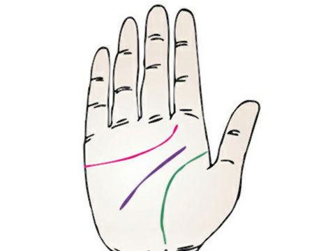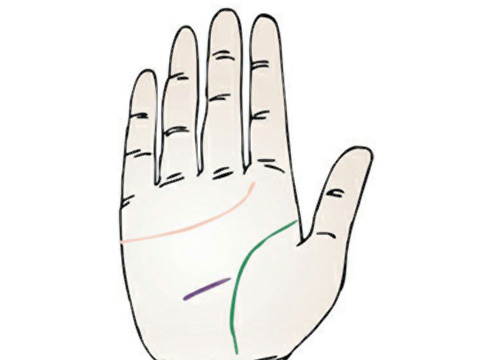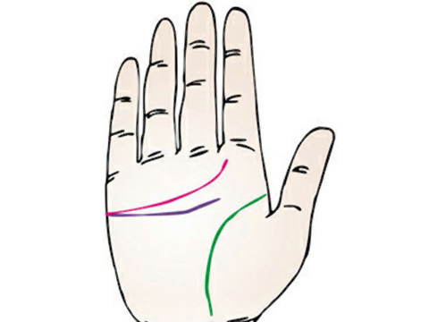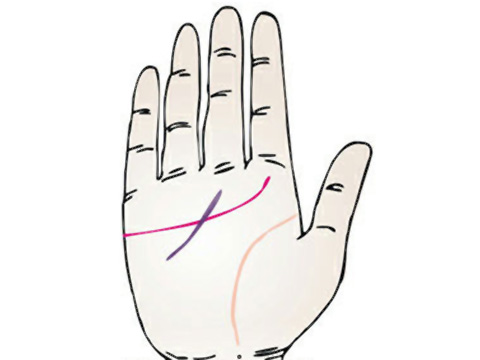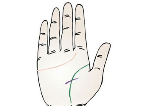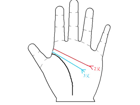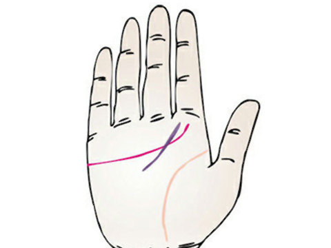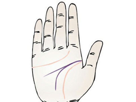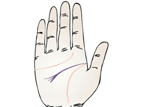 智慧线如在右手掌中分叉,一条横过掌中,一条下垂必备