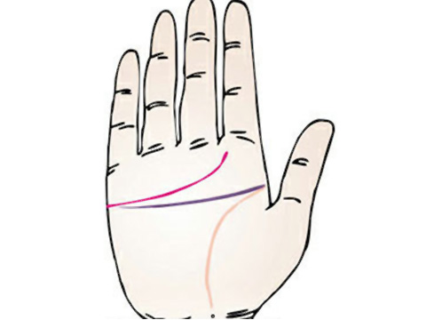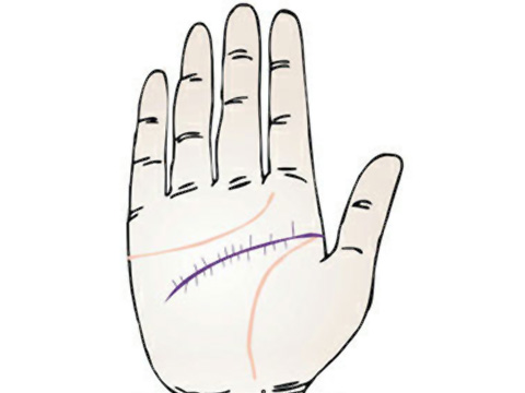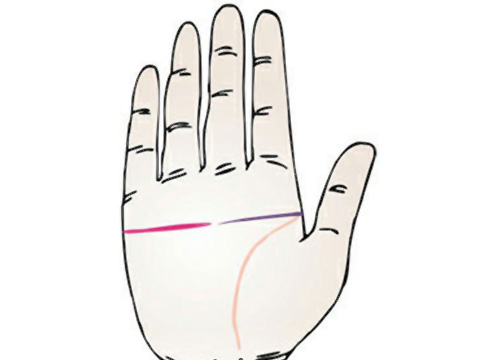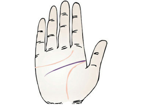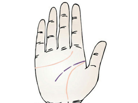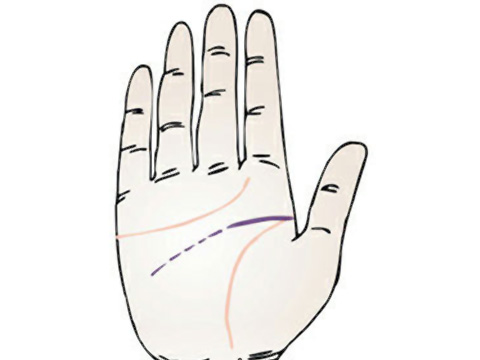 智慧线横断手掌、且没有感情线的人又称为"断掌"。这类型的人,虽拥有财运,但因多半生活不安定,所以平常应该多加谨慎。