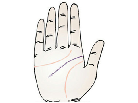 思绪混乱,易有精神分裂、幻想…等症状,因失去理智而犯罪,精神状态不稳,难以控制。智慧线与人格及人际关系相关,有此纹者,常常进出监狱,做奸犯科,一生无一事处。