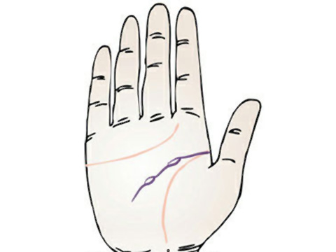 智慧线呈锁链状或波浪状的人主低能、记忆力不好,且经常会头痛。